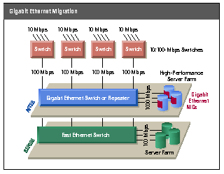 Gigabit Ethernet promises the dual benefit of seamless integration with the millions of Ethernet networks operating worldwide and ten times the bandwidth capacity of Fast Ethernet. Customers can enjoy greater bandwidth capacity with minimal retraining, because Ethernet is already a familiar technology. Cisco anticipates widespread adoption of Gigabit Ethernet and plans to provide Gigabit Ethernet support across its product line. For anyone considering a migration to this new technology, the article "Gigabit Ethernet Holds Promise for Scaling Campus LANs and Intranets" presents some forward-looking information.