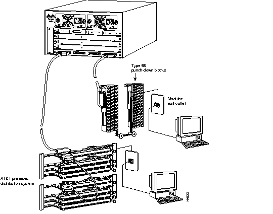 Figure 8-6 through Figure 8-9 provide examples of commonly used wiring layouts for the Catalyst 5000 family.