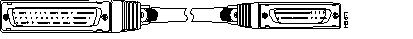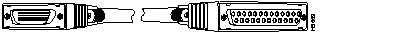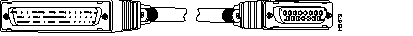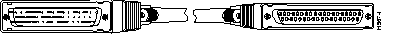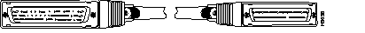 The following illustration shows serial cable CAB-HNUL= (part number 72-0727-01), which is used in the Cisco 7500 series, Cisco 7000 series, and Cisco 4000 series (NP-1HSSI) systems. This cable has a male DB-50 (SCSI) connector on the Cisco end and a male DB-50 (SCSI) connector on the network end.