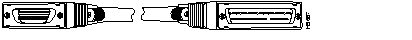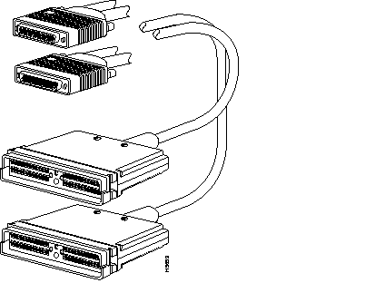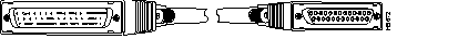 The following illustration shows serial cable CAB-HSI1= (part number 72-0710-01), which is used in the Cisco 7500 series, Cisco 7000 series, and Cisco 4000 series (NP-1HSSI). This cable has a male DB-50 (SCSI) connector on the Cisco end and a male DB-50 (SCSI) connector on the network end.