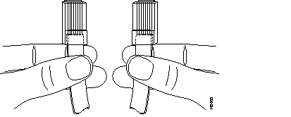 The following illustration shows serial cable CAB-V35MT= (part number 72-0791-01), which is used in the following systems: the Cisco 7000 family, Cisco 4000 series, Cisco 3600 series, Cisco 2500 series, Cisco 1600 series, Cisco access servers, and AccessPro PC cards. This cable has a male DB-60 connector on the Cisco end and a male Winchester connector on the network end.