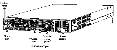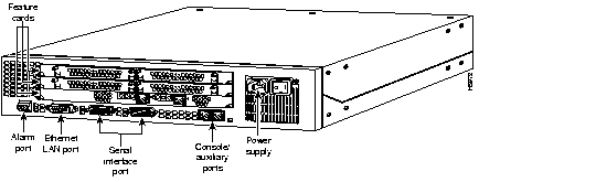 The access server includes three slots (see Figure 10-79Figure 10-79) in which you can install a combination of feature cards.
