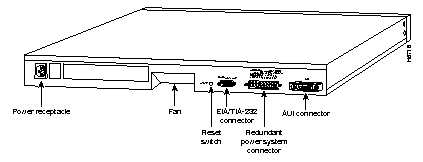 | 10-Mbps ports: RJ-45 connectors; two-pair Category 3, 4 or 5 UTP cabling; DB15 connector on AUI port