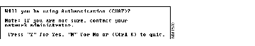 Step 5 Read the dialog box, then press any key to continue. The Authentication (CHAP) dialog box displays. See Figure 2-23.