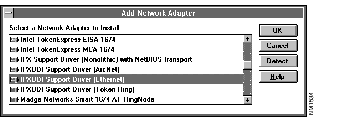 The Add Network Adapter dialog box, which contains a list of available NDIS drivers, displays. See Figure 3-5.