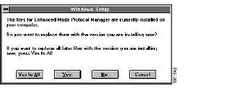 Step 8 If you have previously installed these files, Windows for Workgroups will ask if you are sure you want to replace them. The Enhanced Protocol Warning dialog box displays. See Figure 3-13.