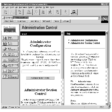 You can administer CiscoSecure from any workstation in the network as long as the workstation is running either Microsoft Internet Explorer 3.02 or Netscape Navigator 3.0. The address to enter in the remote administrator's browser is: http://<<Windows NT Server ip-address>>:2002. The port number, 2002, is changed after the initial login of a remote administrator.