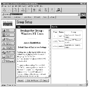 Step 5 Select a User Group the group list box--Represents a set of attributes and operations that are applied to all users assigned to the group. The default group is Windows NT Users. Its group number is zero (0).