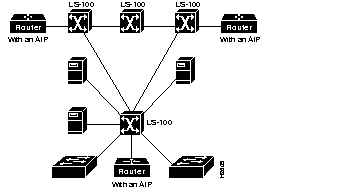 The LightStream 100 ATM switch is designed primarily for constructing ATM workgroup and campus backbone networks (see Figure 1-1) that connect a number of ATM routers, multilayer switches, and high-performance servers into a router cluster. ATM routers allow existing LANs to be interconnected across ATM backbones while paving the way for new applications, such as virtual LAN internetworking.