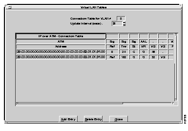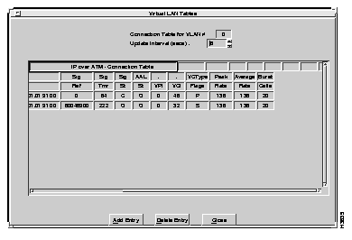 Each time an application program sets up a connection between ATM end points on a particular VLAN, an entry is added to the connection table.