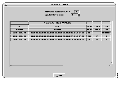A client ARP table is located on each ATM client. After a virtual LAN is initialized, ARP table entries may be added or removed. There are two possible configurations: