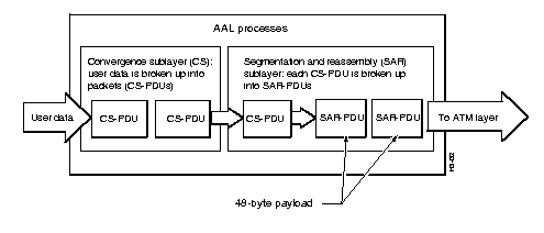 The AAL is divided into two sublayers: the convergence sublayer (CS) and the segmentation and reassembly sublayer (SAR), (see Figure 1-12).