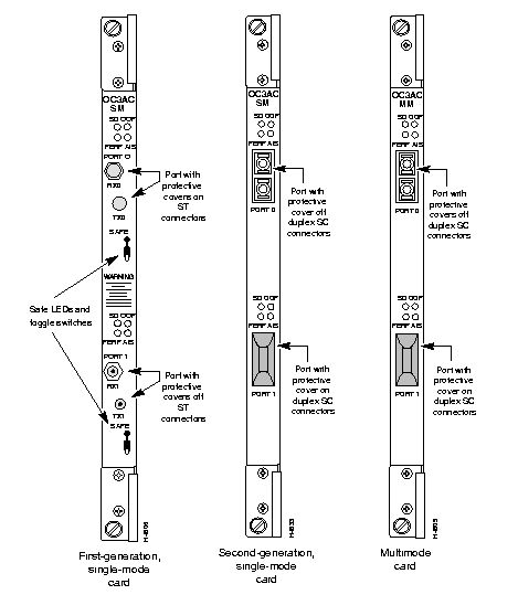 OC-3c single-mode access card equipped with ST connectors (OC3AC-SM) -- 1 or 2 ports OC-3c single-mode access card equipped with SC connectors (OC3AC-SM) -- 1 or 2 ports OC-3c multimode access card equipped with SC connectors (OC3AC-MM) -- 1 or 2 ports |