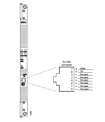 Figure 3-29 shows the RJ-45 connectors and their pin assignments on the Ethernet access card. These connectors are used for Ethernet twisted pair (10BaseT) ports.