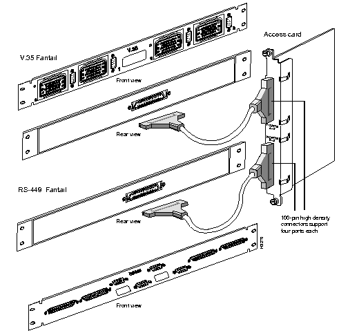 This section tells you how to remove and replace LightStream 2020 fantails, which provide connectors for data cables. Figure 3-16 shows how fantails are connected to low-speed access cards.
