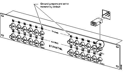 Figure 4-4: Jumpers on the E1 fantail can be set to ground at either transmit (TX) or receive (RX).