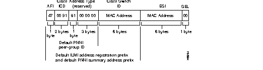 The Lightstream 1010 ATM Switch is autoconfigured with an ATM address using a hierarchical addressing model similar to the OSI network service access point (NSAP) addresses. PNNI uses this hierarchy to construct ATM peer groups. ILMI uses the first 13 bytes of this address as the switch prefix that it registers with end systems.