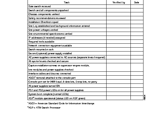 Before starting the installation, copy the Switch Installation Checklist shown in Figure B-1. Each task in the Switch Installation Checklist should be verified by the person performing the installation and then dated for the permanent-site record.