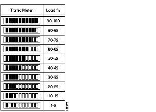 The traffic-meter LED provides a visual indication (as an approximate percentage) of the current traffic load on the primary ring. (See Figure 1-3.)