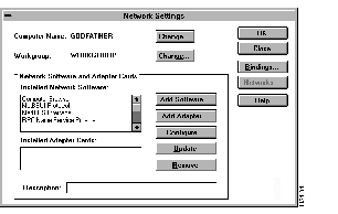 Step 11 The Network Settings dialog box will appear with the Windows NT driver in the list. (See Figure 5-6.)