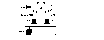 If a user on Fredo mounts files on Delbert, then NFS traffic goes over the Ethernet to either Samson or Aria and from there over an FDDI network to Delbert. However, if a user on Samson mounts files on Aria, the NFS traffic can go over either the FDDI or Ethernet. The user can specify which interface to use by including Aria's FDDI or Ethernet host name in the mount command as follows: