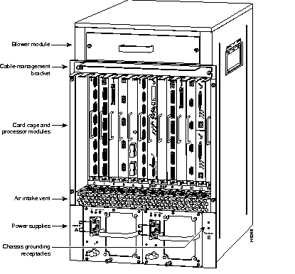 The Cisco 7507 uses a blower assembly (see Figure 1-21) that supplies cooling air to the chassis interior. (A spare blower assembly ships as Product Number MAS-7KFAN=.) For blower assembly maintenance information, refer to the section "Removing and Replacing the Cisco 7507 Blower Assembly" in the chapter "Maintaining the Cisco 7507."