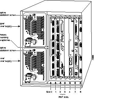 The RSP1 must be installed in the top slot in the Cisco 7505, which is labeled Slot 4 on the backplane and RSP to the left of the slots. (See Figure 1-3 on page 1-6.) (An RSP4 can also be used with the Cisco 7505; see the section "RSP4Cisco 7505, Cisco 7507, and Cisco 7513" on page 1-26.)