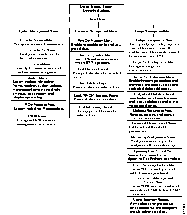 This chapter describes how to manage your FastHub or FastHub stack by using the BMM management console, a menu-driven interface for network configuration and management. This chapter also provides information about how FastHub connections affect network management, explains unit and port numbering conventions, and lists management console defaults.