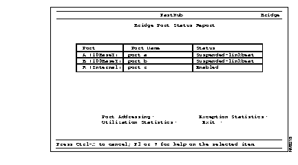 Use the Port Status Report menu to display a summary of all ports configured by the Bridge Port Configuration menu (see Figure 3-38).