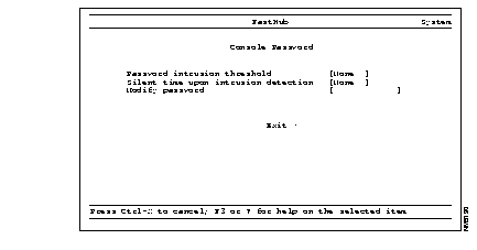 | Password intrusion threshold | None | Console Password |