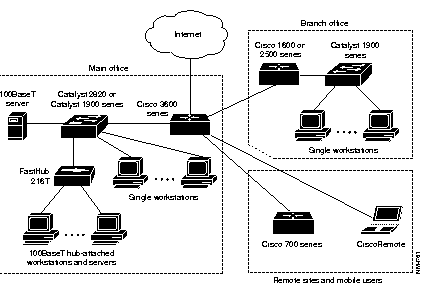 A system of routers, switches, and hubs can be combined to create a high-performance network that extends beyond the main office LAN to connect to branch offices, remote sites, mobile users, and the Internet. Figure 1-7 is an application for an extended network system.
