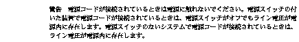 Varoitus Älä kosketa virtalähdettä virtajohdon ollessa kytkettynä. Virrankatkaisimella varustetuissa järjestelmissä on virtalähteen sisällä jäljellä verkkojännite, vaikka virrankatkaisin on katkaistu-asennossa virtajohdon ollessa kytkettynä. Järjestelmissä, joissa ei ole virrankatkaisinta, on virtalähteen sisällä verkkojännite, kun virtajohto on kytkettynä.
