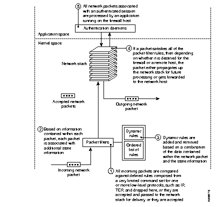 Figure 3-8 depicts the network packet evaluation process used by a dynamic packet filter firewall.