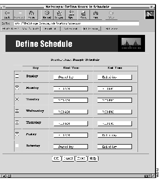 Step 5 Click Define Hours to define the times in a schedule.