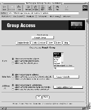 The Group Access window appears. Sample Group appears in the Select a group pull-down menu.