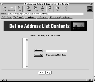 Allow only the addresses in the selected list. This option allows access to only the locations in the address list selected in the pull-down menu. For example, you could create an intranet of corporate addresses only.