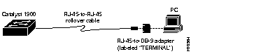 Use the thin, flat, RJ-45-to-RJ-45 rollover cable and RJ-45-to-DB-9 female DTE adapter (labeled "TERMINAL") to connect the console port to a PC running terminal emulation software. Figure B-7 shows how to connect the console port to a PC. Table B-3 lists the pinouts for the console port, the RJ-45-to-RJ-45 rollover cable, and the RJ-45-to-DB-9 female DTE adapter (labeled "TERMINAL").