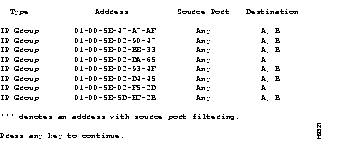 | [S]uspend | The port stops forwarding until a packet with a valid source address is received. |