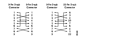 Connection to another hub with internally crossed TD and RD pairs requires a crossover cable. The Modem Cable Schematic and the Null-Modem Cable Schematic are shown in Figure B-5 and Figure B-6.