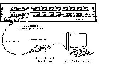 Follow these steps to connect a VT 320/420-series terminal to a Catalyst 1800 Token Ring switch (see Figure 1):