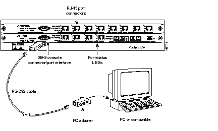 Follow these steps to connect an IBM PC or compatible to a Catalyst 1800 switch (see Figure 3). Note that the PC must be running a VT terminal emulation program.