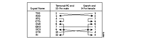 Use a null-modem (crossover) cable (Figure F-4) to connect the EIA 232 port to a terminal (DTE) with a 25-pin connector. Alternatively, you can use a modem cable and a null-modem adapter. DTR (pin 20) and RTS (pin 4) must be on, or high, on your terminal or in your terminal emulation program.