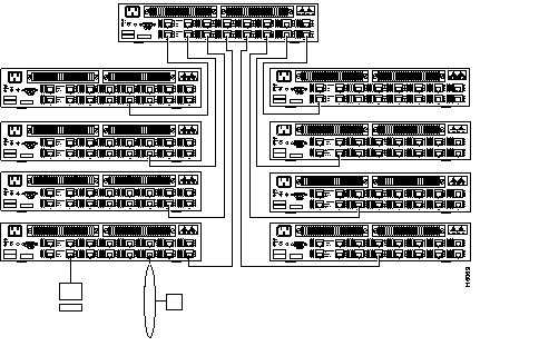 The topology of a cascaded network of Catalyst 2600 switches is important from a performance perspective. A star topology (as in Figure 2-1) offers maximum bandwidth, and is preferred for network problem determination because no single cable carries all of the traffic. A serial topology reduces capacity and could divide the network in the event of failure.