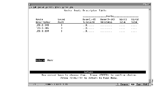 To view all entries in the master address table, select Master Address Tables on the Status/Statistics Menu. The Master Address Table panel (Figure 7-5) is displayed. The master address table can contain up to 10,000 entries.