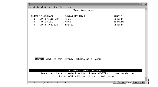 To view or change the list of SNMP managers to which traps are sent, select Trap Receivers on the SNMP Configuration panel. The Trap Receivers panel (Figure 7-19) is displayed.