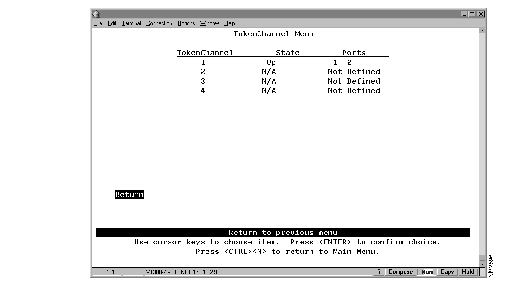 To view status information for any TokenChannels configured in the Catalyst 2600, select TokenChannel Status on the Status/Statistics Menu. The TokenChannel Status panel (Figure 7-4) is displayed.