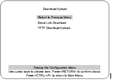 Downloading is used to load the Flash Memory within the Catalyst 3200. The Download menu displays two download choices. The two choices are TFTP (Trivial File Transfer Protocol) download and the Serial Link download (console).