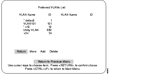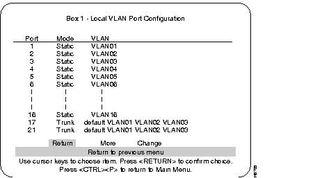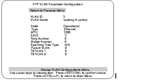 This section describes VLAN, the next selection on the Configuration menu. The optional VLAN and VTP feature is available on the Enhanced version of the Catalyst 3000 series (contact your Cisco sales representative for information). Using the VLAN feature, you can partition a single Catalyst 3200 into multiple VLANs, each containing its own set of ports. Packets are forwarded only between ports belonging to the same VLAN.