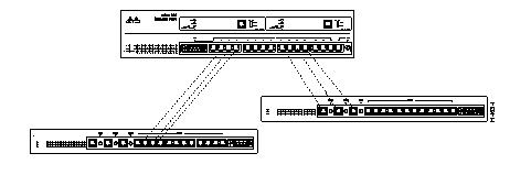 In a multiple LAN scenario, one ATM switch, two routers, and two Catalyst 3200 series switches are used, but multiple emulated LANs are configured. In the following example, three emulated LANs are configured on two routers and two Catalyst 3200 series switches for three different departments in a company.