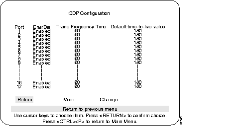 The Configuration menu enables you to view and set the Catalyst 3200 configuration parameters. The following section describes the Configuration menu and its sub-menus.